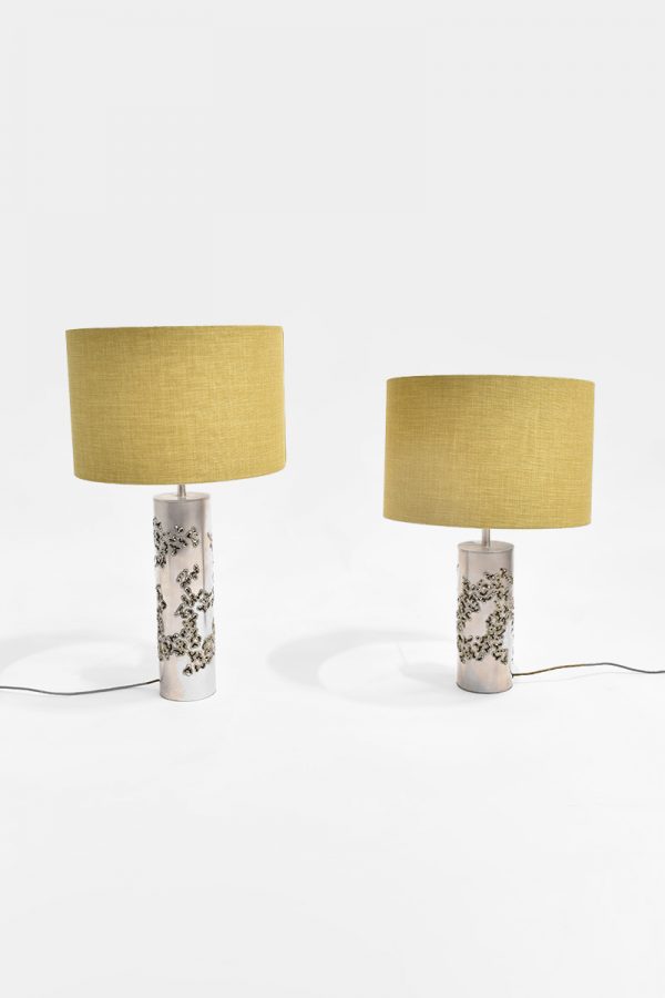 / Brutalist Metal Lamp With Lime Shade