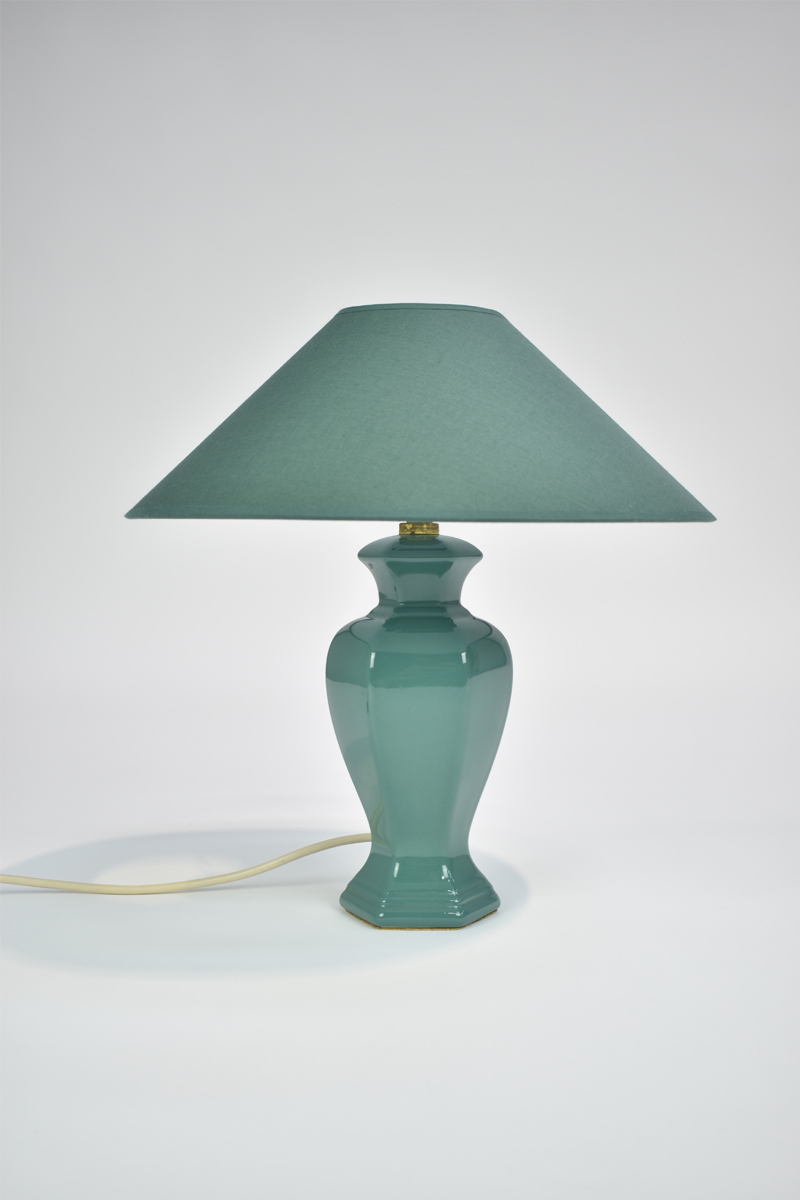 Teal Hexagonal Table Lamp With Coolie Shade